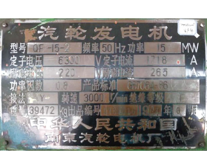 15MW發(fā)電機(jī)銘牌